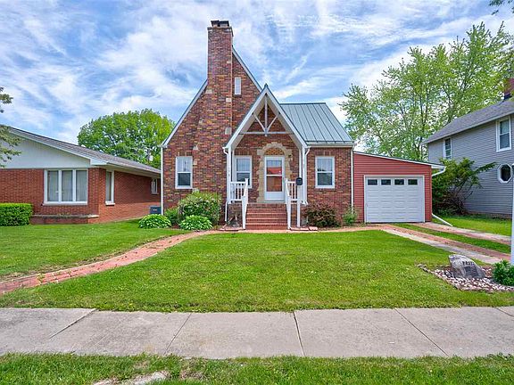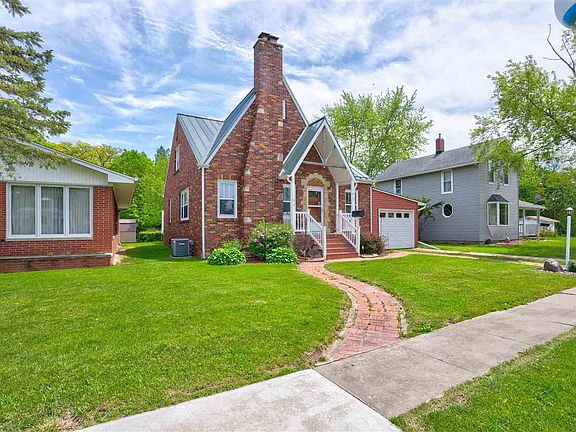 1940's cap cod home well cared for located close to downtown Columbus Junction. This home has plenty of history and built by the talented August Foss. Augie built several homes in the area, the bell tower and also the FFA building at the high school. This home features his famous fireplace designs with an elephant appearing pattern. The large living room with natural light will be your favorite spot in the home. The kitchen features hardwood floors, a built in cutting board, ironing board, bread drawer and large pantry closet. The main bath has a stand up shower and the washer and dryer to create one level living. The bedrooms both have hardwood floors and the guest bedroom has a large door that leads out to your private deck with sunken hot tub. The garage has a spot for 2 cars (staked) and a full basement offering plenty of storage and a shower. The attic could be finished into another bedroom or den. Don't miss this unique home with curb appeal and plenty of history, call today!
