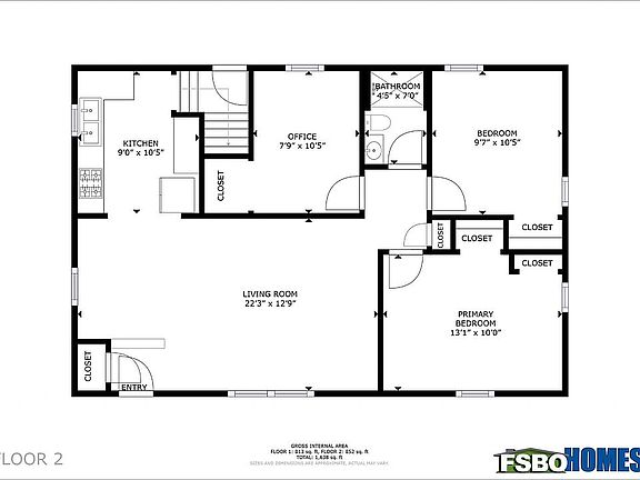 - Total interior livable area: 864 sqft