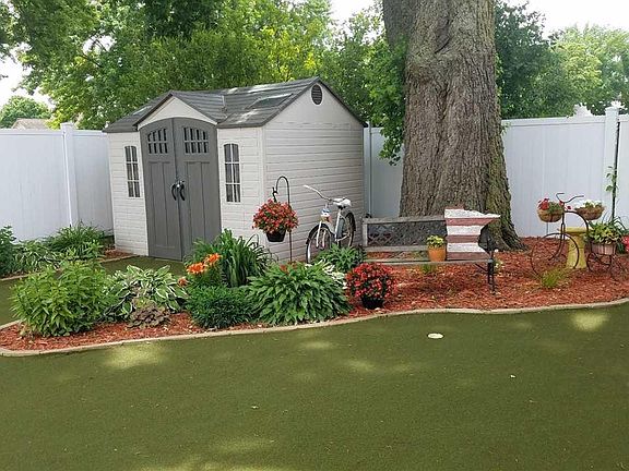 Very attractive home with lots of charm, class, and character! Featuring a quaint and elegant open porch that leads you into a very spacious entry, renovated kitchen with lots of oak cabinets and built-ins, over, under cabinet lighting, metal ceiling, adjacent to kitchen is first floor laundry, formal dining with beautiful hardwood oak floors, non-working fireplace, oak pocket doors to adjacent rooms, spacious living room with hardwood oak floors, adjoining den/family room with closet, completely renovated full bath with separate Onyx shower, newly redone clawfoot tub. Recently repainted throughout interior. Off entry is a partial open stairway to upper level that features neat sitting area with princess tower, four bedrooms with ample closets, primary bedroom having two large closets and a sitting bench area with storage below, new carpeting, renovated full bath, additional partially open back stairway to lower level, and 1/2 bath in back entry. Separate stairs to full walk-up attic that has partial flooring with energy efficient furnace, central a/c, and separate C-B panel for upper level. Original basement with sump pump, some remortaring and other work, separate stairway to exterior, with newer steel door, energy efficient Lennox Pulse Furnace, 100-amp electrical, sump pump, electric 50-gallon water heater, owned water softener. Triple garage, new Gazebo built in 2021, maintenance free back deck, block patio, putting green with artificial turf, vinyl siding, fenced in backyard with basketball court. Located on a spacious and shady corner lot, lots of new landscaping, must see this home to appreciate all of its fine qualities and many amenities!