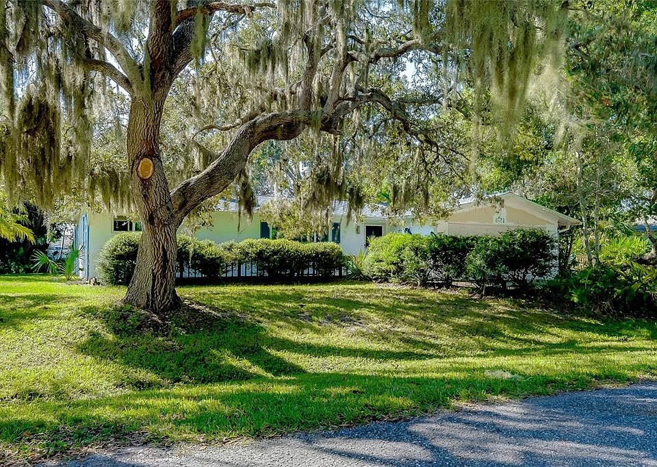 Own a piece of paradise less than 5 miles to the public beach and under 2 miles to private beach. Major work has been done including a New roof in 2020, New Ac in 2021, new electric panel, and a few impact windows in the front. This spacious 3 bedroom home with over 2,000 sq ft is on 3 Lots with 120 ft of road frontage and 100 ft depth. It is located on a quiet dead end street with No turn around. The property is maturely landscaped with large Oak Trees, 2 Maple trees and 6 Palm trees, a ponytail palm and a fan tail palm. There is a portion of the back yard that is fenced and has double gated access for wide entry on one side and a single gate on the other. There are Garden boxes in the chain linked fence area, two brand new decks off the sliders. Inside you will find the floor plan is split with all bedrooms having privacy. The kitchen has an island, a breakfast bar and large pantry closets. There is also a nice built in desk area. There are 2 dining room areas. A large formal dining room and a smaller area of the formal living room which has a nice wood burning fireplace. The garage has been converted to a family room with a slider going out to a new deck area. The garage door is still there and there is workshop storage area behind it. You will also enjoy the size of the laundry room. There are NO carpets in this home. All flooring is parquet and Tile. Owners updated one bathroom. Schedule a showing today and Make an Offer.