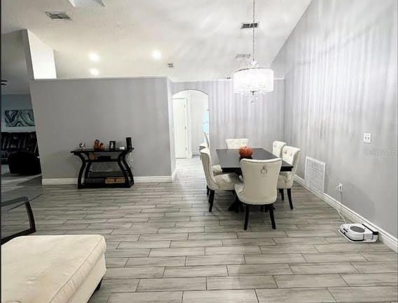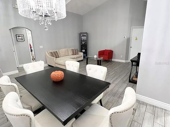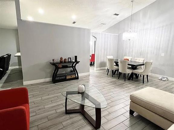 Beautiful well maintained 3 bedroom and 2 bathroom home in a quiet residential community with a newly screened Private Pool, fenced. This home is situation in Hampton Lakes Resort. This modern living room/dinning room has a spacious natural sunlight from the skylight windows in the living area. The space is equally spread and vaulted ceiling had a cozy charm. Each bedroom has sufficient storage space and the beautiful well-designed master bedroom has pool view. Home recently had a new roof in 2017, new AC system installed in 2019, the home was tile throughout in 2020 and the bathroom was also renovated in 2020. The pool filter and pump was recently replace in 2017 and the pool screen in 2021. This community has great curb appeal! This home is near to shops, restaurants and schools and less than 15-20 minutes from Margaritaville and Disney attractions.
