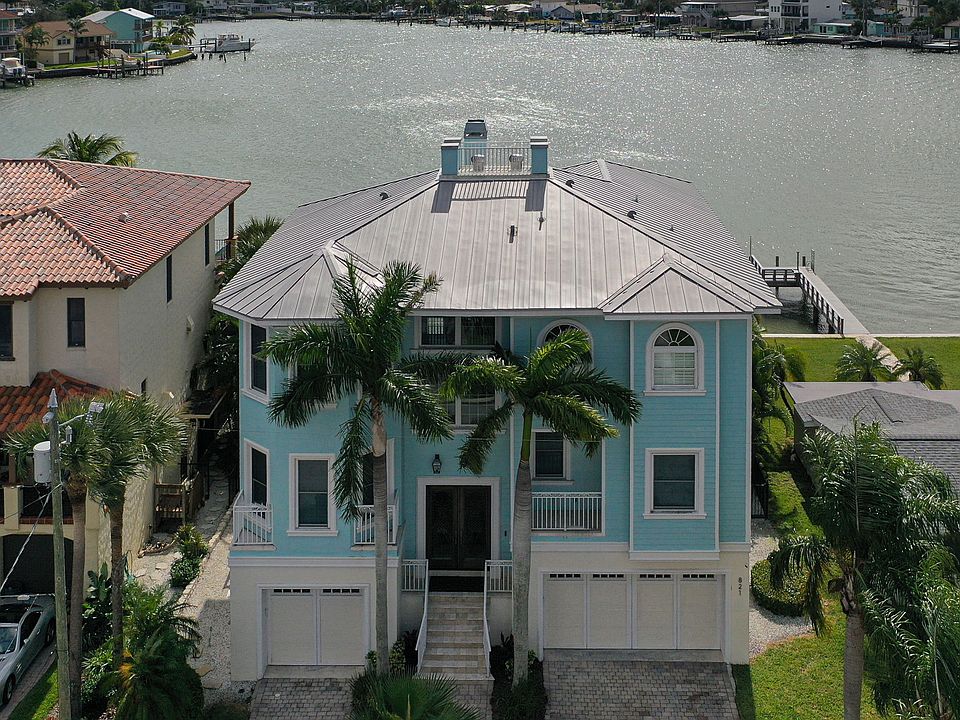 4BR 4BA Key West Style waterfront home with stunning wide water views. New boat dock and seawall. Two garages - 2 car plus 1 car garages. Elevator goes to all floors from garage/ground floor.