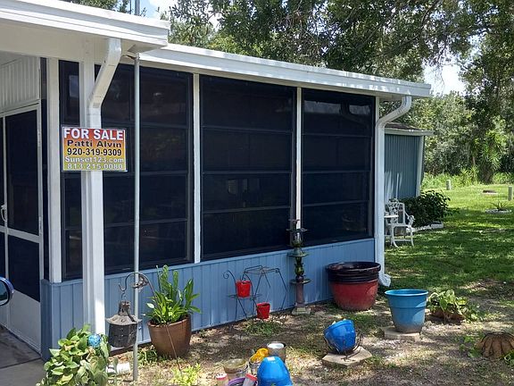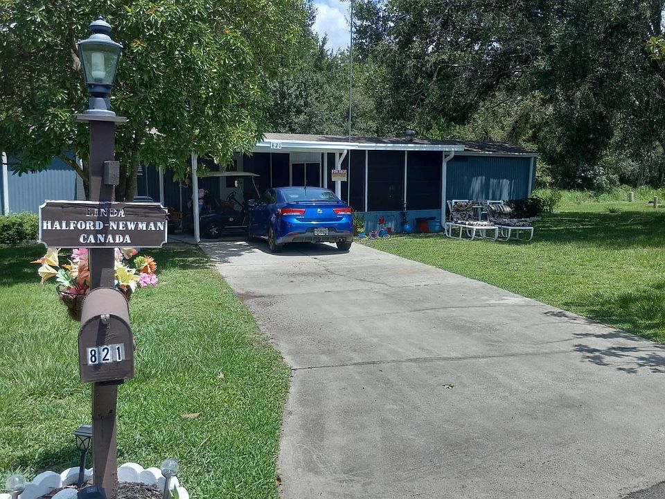 SALE PENDING! You don't want to miss this 1988, 924 sq ft, 2/2 home in Hidden Golf Club a 55+ community located on Lake Henry in Central Florida! This home sits on a huge corner lot tucked up against the woods with multiple fruit trees. The large driveway offers plenty of room for vehicles and carts. It also has both a screened lanai and a fully enclosed Florida room. The open concept floor plan with split bedrooms/bathrooms on each end offers the perfect space to relax and entertain guests. The roof is about 5 years old with plenty of life left. The A/C is approximately 4 years old and works great. The kitchen appliances were purchased in 2019 so they are in "like new" condition. There is plenty of storage inside and out featuring a walk-in closet in the master bedroom. The master bath has been fully renovated including a walk-in shower. Other perks include a 5500-watt generator, multiple outdoor storage units, room-sized rugs, sun blinds on Florida room windows, and a hand-painted tropical mural on the guest bedroom wall. This home is turnkey just waiting for you to bring your clothes and toothbrush. The monthly lot rent is currently $490 giving owners access to amenities like 18 hole executive golf course, onsite restaurant, pro shop, two clubhouses, two pools, exercise room, card rooms, billiards rooms, and shuffleboard courts, pickle/tennis ball courts, horseshoe, and libraries. There is always something fun to do such as corn hole, boating, fishing, golfing, dancing, variety shows, ceramics, etc. Come and see why Hidden and Swiss Golf homes are in demand. Call the agent to schedule a tour today. We're waiting for you.