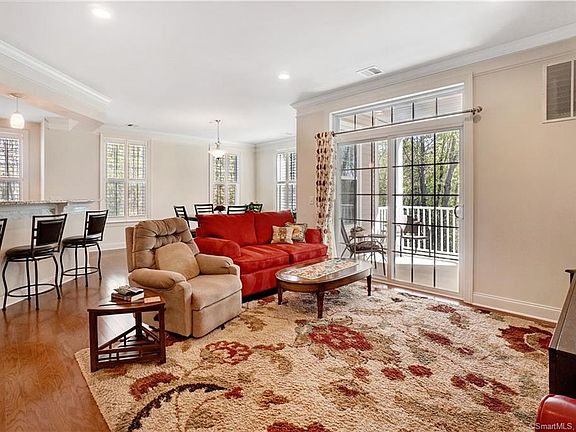 Corner End unit on 2nd floor flooded with natural light. The great room windows have custom made plantation shutters, crown moldings, open floor plan, Hardwood floors are in living, dining room and kitchen. Living room has sliders to a private covered balcony that over looks private wooded yard. The gourmet kitchen has all high-end stainless appliances, gas range, granite counters, breakfast bar with stools, tiled back splash, under cabinet lighting, recess lighting, pendant lighting and hook ups for additional fixtures.. Bedrooms are carpeted with immense amount of closet space, master is en-suite with double granite vanity, tiled floors. 2nd bath is just off 2nd bedroom with huge laundry closet across the hall. There is an oversized one car garage on lobby level with room for storage, garage door opener with a battery power back up. Award winning Newtown Woods has Luxury living at its best, common areas include community barbecue , bocce court, sidewalks, club house with gym, gourmet chefs kitchen recreation room, sauna and beautiful inground pool. There is plenty of additional parking for guests and an extra car. Make this over 55 active adult community your next home.