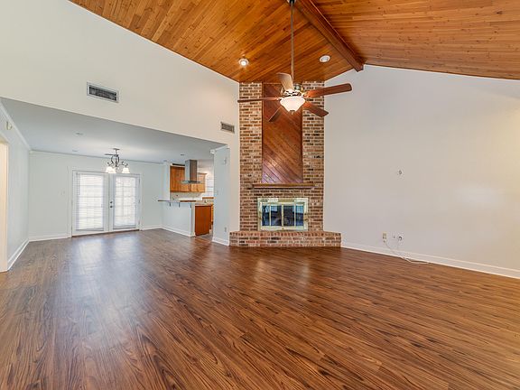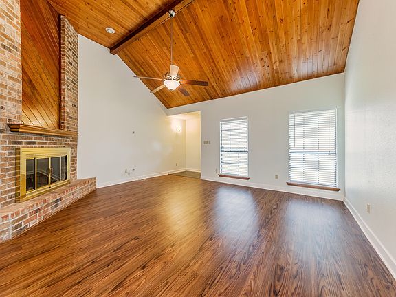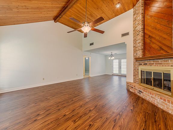 Gorgeous details and great location! This 3 bedroom 2 bath home offers a unique craftsman style with close proximity to great shopping and dining. You'll love the open layout connecting the kitchen, dining, and living areas. The living area is open with gorgeous wood cathedral ceilings and brick fireplace. The kitchen is spacious and offers a countertop bar. The master suite features his and hers vanities, separate closets and a custom built in. Enjoy the spacious backyard, extended driveway and carport. Schedule a showing today!