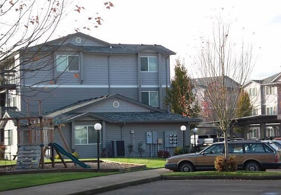 Spacious apartments with washer and dryer included. Double sink with garbage disposal, and dishwasher in the kitchen. Each apartment has a large private patio or balcony with extra lockable storage area just off it. One covered parking spot assigned to each apartment. Twenty four hour fitness room is available to all residents and there a play area with swings and slides next to the Rental Office. We are close to shopping and have easy access to I5. Move in in January and get half off February's rent when you sign a lease! Offer valid for new residents and this unit only. We offer 8 month leases or month to month. There is an additional $45 each month for water/sewer/garbage. Move in in January and get half off February's rent when you sign a lease! Offer valid for new residents and this unit only. We allow dogs up 25 pounds adult weight and cats. There is an additional $300 security deposit per animal and $25 a month pet rent per animal. Maximum 2 pets per apartment. We are a Smoke Free community. Two vehicles allowed on site per apartment and each apartment is assigned one covered parking spot with several uncovered spaces available for the second vehicle.