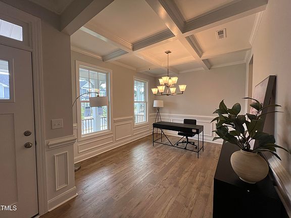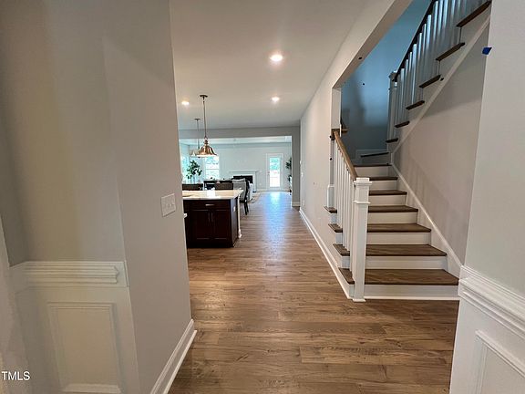 Beautiful Trillium floor plan! Cozy front porch, perfect for rocking chairs - enter in to see a formal dining room with gorgeous chair rail and a coffered ceiling. Spacious kitchen with beautiful island and ample cabinet space and a convenient breakfast nook. Trey ceiling in family room with cozy fireplace, perfect for entertaining or relaxation. Downstairs laundry located near the roomy first floor owner's suite, which also features a tray ceiling. Incredible owner's suite closet conveniently located off the owner's suite bathroom. Laminate flooring throughout first floor. Split case stairs take you to open loft - giving you amazing opportunities for entertaining or enjoying your space all on your own! Three secondary bedrooms upstairs. Walk in attic for additional storage space! Amazing amenities!! 1st year of pool/water park included as paid membership. Public access to dog park, splash pad, playground, walking trails park, and walking distance to delicious local restaurants & nightlife. Located next to Knightdale Station Park, this community has endless opportunities!