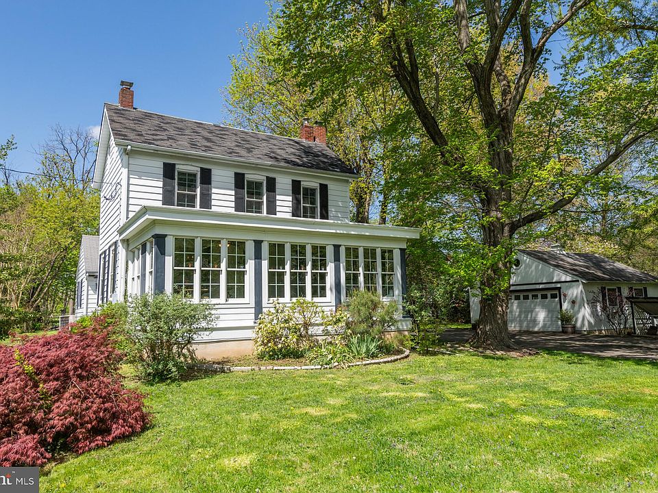 Welcome home to this historic 3 bedroom home in the Dolington community of Upper Makefield Twp. Set on almost an acre of land and set back from the road, this home displays the perfect combination of rustic charm with sophistication. Boasting two additions and modern upgrades, this home provides both old world charm and functional living space. As you step inside you will immediately notice the original wood flooring, historic character and meticulous care that grace this home throughout. Enter to the formal dining room where you can entertain friends and family in style boasting an exposed wood beam ceiling and beautiful iron chandelier. On your left is your bright and cozy living room complete with a wood burning stove set amongst a stone backdrop, ceiling fan and additional storage closets discreetly tucked away. The living room flows nicely to a bonus sitting room which could double as a playroom or even office! Step down to your sun room drenched in sunlight featuring wall to wall black framed windows providing panoramic tree lined views, two ceiling fans and convenient access to the front driveway. On the right side of the house is your eat in kitchen featuring stainless steel appliances, built in microwave, gas cooking and ample cabinet and counter space. A separate hallway with the laundry room and powder room is conveniently located right off the kitchen with a pantry closet and direct outdoor access. Take a few steps over to your spacious family room featuring a propane stove, ceiling fan and oversized windows and door leading out to your backyard patio, perfect for indoor/outdoor entertainment! Heading upstairs the split staircase leads you to a full bathroom on your right styled in a farmhouse black and white theme complete with tiled tub/shower combo and linen closets. On your left you'll find a hallway with 3 bedrooms, all with crown molding, carpeting (original hardwoods are underneath!) and windows for natural light. The spacious primary bedroom features large windows providing a stellar view of the gorgeous backyard and boasts an ensuite bathroom area with a water closet, stall shower and matching mirror and vanity set with octagonal windows on either side. This home has an unfinished basement which is perfect for additional storage. Step outside to your enormous backyard offering a true oasis featuring a patio where you can enjoy your morning coffee in peace, mature landscaping providing ample privacy, a butterfly garden with native plants and pollinators, a raised bed fenced in vegetable garden, abundant space to enjoy outdoor activities and bonus shed! The detached two car garage and large driveway offers ample parking. Located close to the Trenton/Mercer airport and I 295 for commuting AND ideally situated between Newtown with a variety of restaurants and shopping and Washington Crossing Historic Park! Council Rock School District too! Don’t miss your opportunity to see this STUNNING historic home. **Seller is also including a one year home warranty to the future buyer**
