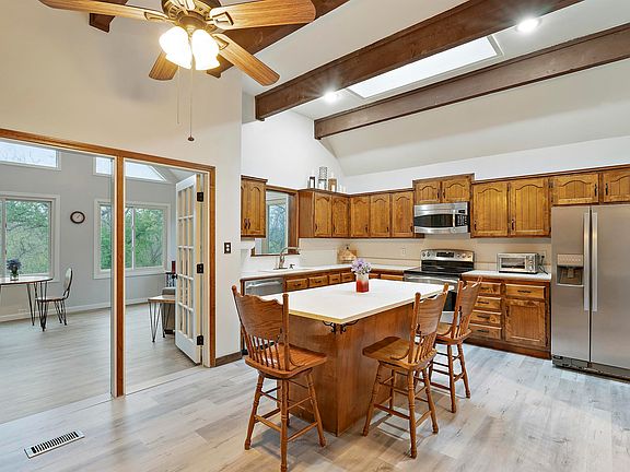 Here's your chance to own acreage. So many possibilities here. Build a shop, install a pool, grow a garden, create an amazing treehouse or playhouse for the family, or just spend time relaxing by the creek or exploring the property. Beautiful wooded 2.2-acre lot in a quiet area just 5 minutes from Lawrence. Stunning native stone fireplaces, gorgeous bright sunroom, spacious kitchen with stainless appliance, Cathedral ceilings, and a nice deck overlooking your wooded backyard where the wildlife can be observed. New $10,000 septic tank installed last fall. Newer Anderson windows, new flooring, paint, and other upgrades. Be the next lucky owner of a Pleasant Grove Estates property. Don't miss out again, schedule your showing today!