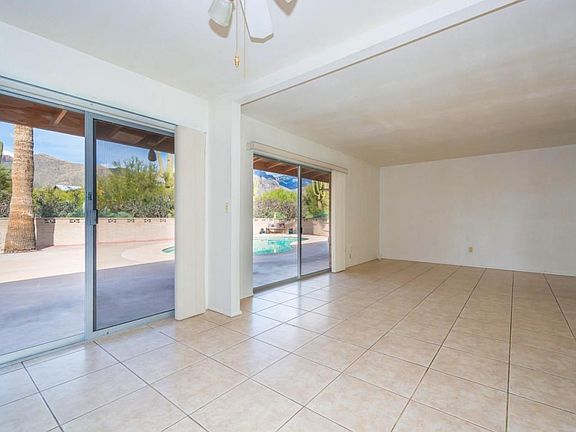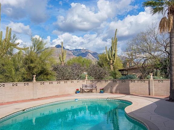 Spectacular Catalina Mountain views from inside and out of this fabulous foothills home! There is plenty of room for the whole family here; Formal living and dining rooms, a spacious family room off the kitchen, 4 bedrooms, 3 baths, a huge recreation room AND a bonus studio/workshop with AC! You will love the remodeled kitchen with maple cabinets, stainless appliances and fabulous granite counters and backsplash, and the generous walled in backyard with sparkling pool and mature trees is perfect for entertaining. Master suite offers ensuite bath with updated shower and vanity area. Nice ceramic tile and wood laminate floors, no carpet! Fresh paint, no popcorn ceilings and plenty of storage, call to see today!