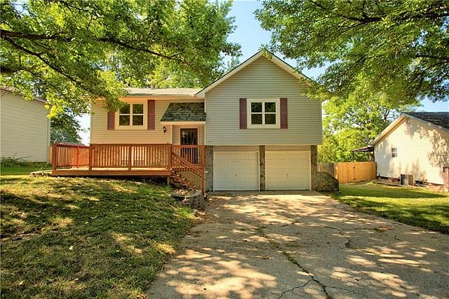 Fall in love with this Split-Entry, 3 bedroom, and 1.5 bath home! Great Olathe location close to award winning schools, shopping, restaurants, parks, highway access, and more! Lower level could be additional living room area or an additional bedroom. Upstairs living room feeds into the kitchen and eating area that boasts sliding glass door access to the deck that overlooks large fenced backyard. New carpet, roof, front porch and interior paint, all you have to do is move in! Neighborhood Description Perfect house in the perfect neighborhood. Quiet area with nearby parks and walking trails. Less than five minutes to I-35, Less than ten minutes to The Strangline Shopping area.