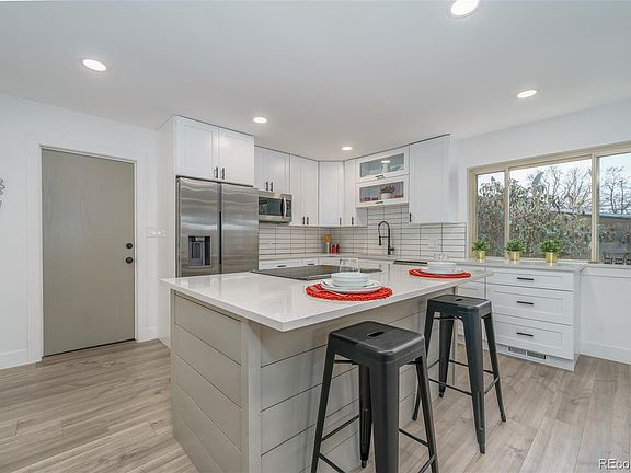 Living is easy in this updated, open-concept ranch home located in a sweet little section of Southwood. The kitchen features a large island, quartz counters, white soft-close cabinets and new Samsung stainless appliances. The modern fireplace in the living room is surrounded by gray shiplap and is wired for a TV. The custom railing around the stairway leads downstairs to a large family room - perfect for movie nights - and a bonus area which could be used as a play area, game room, or exercise area. The primary suite on the main level connects to an en suite bathroom with a walk-in shower. With five conforming bedrooms and three bathrooms, there is plenty of room for children, guests and office space. Large laundry room and an oversized two car garage means there is space for all your hobbies and recreational equipment. Located in a quiet, friendly, walkable neighborhood, with the Highline Canal down the street and just minutes away from Southglenn, Whole Foods, Goodson Rec, Trader Joes, The Original Pancake House, etc. – the list goes on. Easy access to south Broadway and downtown Littleton. Private backyard with mature landscaping.