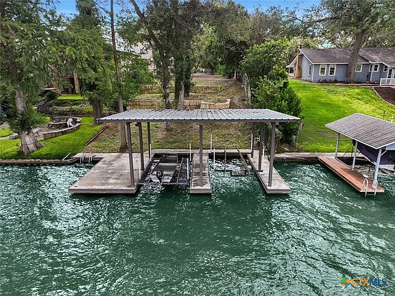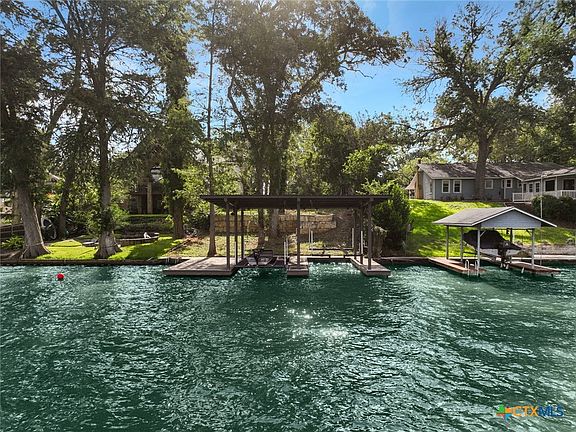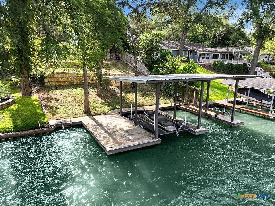 Embrace lakeside living at its finest with this perfectly positioned north-facing lot on Lake Dunlap, where shaded days and cool breezes are the norm. Dive right into the action with a two-stall covered electric boat lift and a smooth concrete walkway leading you to steel stairs with a convenient landing directly into the lake—perfect for those sunny days on the water. This 0.42-acre gem is shaded by mature trees and features terraced landscaping with beautiful stone retaining walls, creating the perfect backdrop for your future lake house. Enjoy the ease of a built-in sprinkler system to maintain the sprawling lawn. Enjoy the added convenience of on-site water and electric utilities, streamlining your building process. Plus, with no city tax, you can spend more time soaking up the serene lakefront lifestyle. This is your chance to build your visionary dream lake home in a location that blends picture perfect lake views with the vibrant cultural scene of New Braunfels and the charm of Seguin. Explore local festivals, dining, and unique shops, all while retreating to your peaceful lakeside sanctuary. Get ready to make unforgettable memories and experience the best of lake life and local culture!