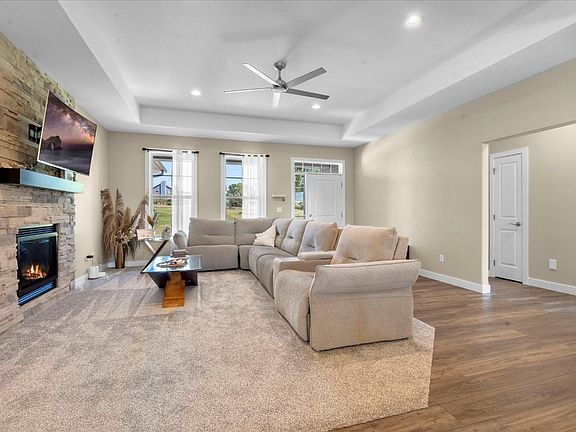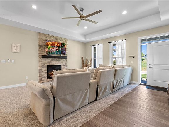Only 2 years old! Price way below replacement & quality built by Integrity homes, this nearly new 4 bed, 3 bath ranch is ready for you to fall in love. Great amenities include quartz countertops throughout, spacious bright kitchen, modern backsplash, Samsung appliances, white trim and cabinets, primary suite with tiled shower and double vanity, beautiful 3 seasons room, main level laundry with locker area, lower level wet bar, 3 car garage, large patio and yard irrigation. You'll love the neighborhood that is close to LM schools, dining & coffee and the Y.