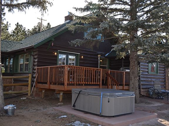 ~Immaculate Estes Park Log Home~ Features include large-log construction, evergreen-filled lot & Lake Estes views.Inside you'll enjoy every modern convenience done with great attention to detail; hardwood floors, granite counters, tile baths with glass block accents. Inviting living room with French doors that lead to a no maintenance deck and amazing fenced yard! Upstairs includes an office,loft area, third bedroom & lots of storage. Sold furnished. Great get-away or full-time home! $499,000