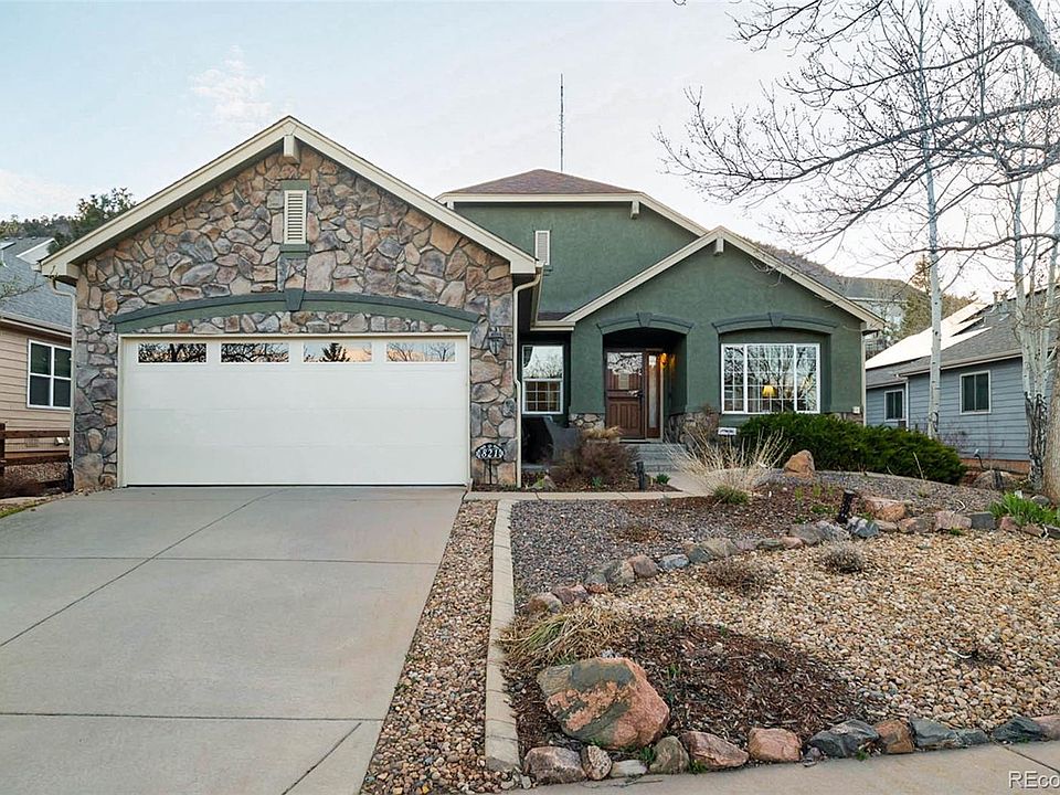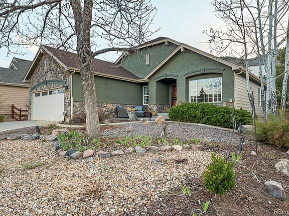 A host of upgrades complement a sought-after locale in this spacious Golden residence. Bamboo flooring and fresh paint craft a bright motif in a living space nestled beneath vaulted ceilings. Picture windows usher in torrents of natural light, illuminating an open-concept floorplan grounded by a gas fireplace. The nearby kitchen flaunts newer appliances and features a vast center island perfect for hosting. Tucked beneath towering ceilings, the primary suite is a showcase of warmth with generous square footage and an en-suite bathroom with dual vanities, a soaking tub and a glass walk-in shower. Each secondary bedroom is just as luminous and flexible for residents’ needs. Outside, a haven of mature trees and hardscaping unfurls for elegant outdoor entertaining. The stone patio overlooks perennial gardens, creating a backdrop for al fresco evenings. Surrounding this home is a number of neighborhood features, including trails, open spaces, parks and easy access to Golden’s vibrant downtown.Home has been pre-home inspected. Inspection report uploaded in the mls.