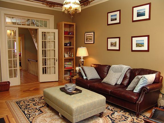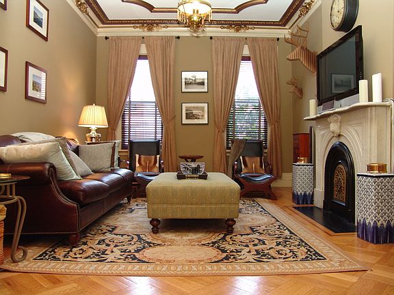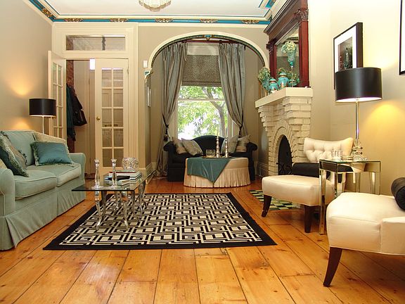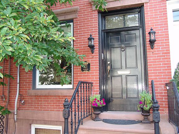 Superlatives are inadequate when describing this spectacular, posh and glamorous brick townhome Turn of the century details with all of today's modern conveniences. Four levels of incomparable living space displayed in elegant taste, from the finished basement/media room to the superb public rooms offering professional grade kitchen with beamed ceilings, marble counters and subway tile backsplash, antique brick floor and state of the art appliances. Formal dining room with wide-plank pine flooring and exposed brick walls. Luxurious parlour with hand painted and gold leaf ceiling medallions and crown molding, wonderful decorative fireplace, mantle and arch. Second level provides inviting living room with decorative fireplace, continued detailing in hand painted moldings and medallions, guest room with private terrace and full bath, while third level houses the master bedroom, designer bath and third bedroom/office. Painstaking attention to detail throughout the home enhance the grace of this unique residence. An enchanting stone paved yard with a verdant canopy of flowering trees add to the beauty of this marvelous residence. You’ll find at all your fingertips: pulsating city nightlife, relaxing day strolls, and fine boutique shopping - Restaurants - just a small sampling of the many conveniences!!!……. An easy commute into Manhattan by PATH, bus or ferry.