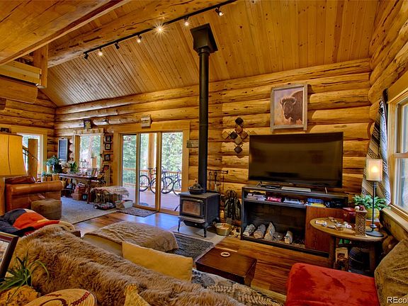 Custom Amish Hand-Peeled Full Round Log Cabin nestled on 2+ acres with Sacramento Creek running through it! This like-new home is located in the highly desired lower portion of the Pike National Forest area. Gorgeous log accents & flooring throughout, stainless steel appliances in the exquisite kitchen, in-floor heat, wood stove, ground-level lock-off with living area, bedroom, storage & utility rooms. Large deck to watch the Moose wander by & 30 minutes to world-class skiing in Breckenridge!