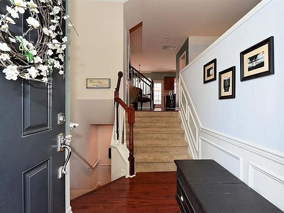 Features include extended hardwoods, ceramic tile, custom cabinets, granite counters, Stainless Steel appliances, gas range, private deck, front porch overlooking pond, wrought-iron stair spindles, solid surface counters in 2nd baths, tray ceilings, walk-ins, 3rd BR or office on lower level, great storage, 2-car garage, & more!