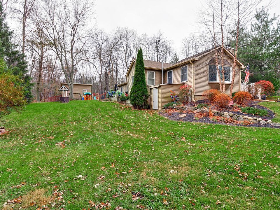 This beautiful 2 bedroom home sits on a nicely sized lot, with landscaping to match. Front living room has corner fireplace. Plenty of cabinet space and room in the kitchen. Gorgeous family room with a large stone fireplace that makes you feel up north! Hardwood floors under carpet in bedrooms. Large storage shed in back. Truly a must see!