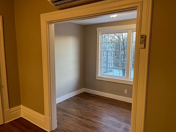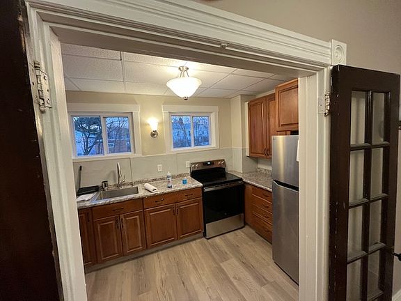 Totally refurbished - new kitchen, new bathroom, new windows, new doors, new floors in bedrooms, bath and kitchen, all freshly painted. New heat pump for heating and cooling. New stainless steel fridge and electric stove. Coin laundry is available in the basement. One of four apartments, it is located on the second floor accessed by stairs (interior to common hallway) and back stair access directly to apartment. Access to numerous bus routes 1-3 blocks away. On site parking is available. Tenant pays for electric. Water is included in rent. No pets, no smoking. We do not live onsite. There will be a non-refundable $25 fee for background check that is provided by Landlord Service Bureau, Inc. Owner pays for water no pets Tenant pays for electric no smoking of any type month to month lease