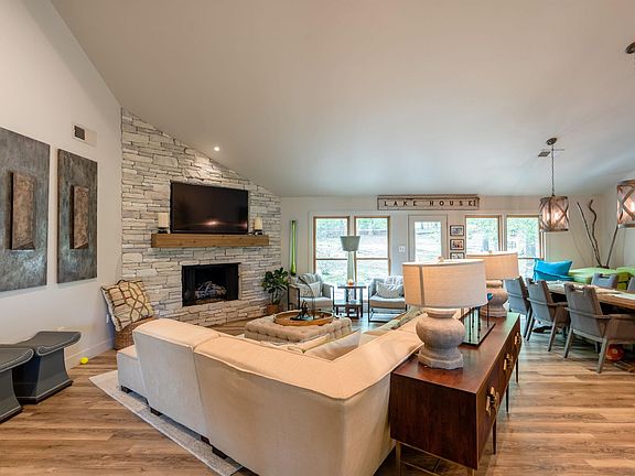 Eden Isle 3-bedroom/3-full-bath home in excellent condition! Located one street over from Eden Isle Marina, this FURNISHED (with very few personal property exceptions) home includes an open-concept living/dining/kitchen with tall cathedral ceilings and large corner stone fireplace! EVERYTHING was updated by a wonderful designer/decorator in about 2017/2018! Wonderful kitchen with stainless appliances, beverage fridge and built-in microwave, large covered front porch, 2-car garage, large backyard and deck, and much more! See the pictures...this home is spectacular!!!