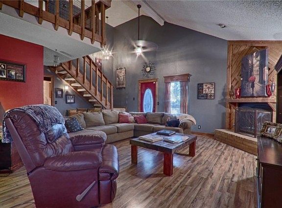 Beautiful home with many updates , paint, light fixtures and ceiling fans, laminate flooring in living and hall, New Ac Unit outside (2014), 2 in blinds through out, New kitchen counter tops, backsplash, lower cabinets, granite sink, faucet and shelves, under cabinet lighting by stove, Kitchen stove( 8-2015) , hardware and a produce storage cubby. The room up stairs is being used as 4 bedroom but can easily be converted back to a larger loft area. Landscaped front yard, Front porch deck added and a new screen door. Close to shopping, dining and only minutes to I-35 or broadway extension,