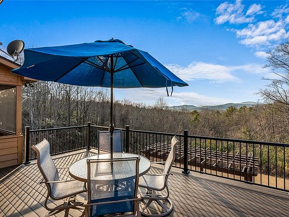 Welcome to 821 Lenore B Lane, a Majestic Mountain home with 5 beds and 5 baths sitting on two lots creating a 3.07 acre piece of heaven. Two of these acres are wooded and this property backs up to the National Forest. As you step inside your eyes will be drawn to a loft area with a 6' picture window that allows you to capture the panoramic western view of the Blue Ridge Mountains. The main house living area boasts of beautiful reclaimed heart pine floors, which complements the stone fireplace. The open-plan layout is perfect for cooking, entertaining or relaxation. Open the doors, have your coffee on the screen porch, which can also be accessed from the owners suite. There is an elevated deck with TimberTech flooring and fortress aluminum railing. The rocking chairs and swing stay for you to make more memories. Four bedrooms have their own private bath. Did I mention these beautiful Pella windows that allow you to capture nature and the mountain views? For privacy, the windows are equipped with custom Hunter Douglas shades. All shades, blinds and Roman shades convey with the home. Upstairs you will find the third bedroom with a mountain view. The owners en-suite has a large walk-in closet with custom shelving. One additional bedroom and bath are on the main floor. The integrated office and laundry room combo offer practicality with style, with an abundance of cabinets and counter space, along with a desk area. Step down to the lower area to be wowed by a large family game room. The ping pong table in this area will be left for continued fun. The walkout basement also host two more bedrooms and two full baths. Outside the basement you will find a storage room area and workshop. Your gaze will take you to an arbor style patio sitting area. Just steps away is a 8x12 fan cooled greenhouse with a 6x12 porch attached to a 14x18 shop/storage with a garage type door. Both have power and water. Within this gated community you will find a pond with a fishing pier. Leaving State Park Estates the Oconee State Park is just minutes down the road. You will find hiking, water falls, and rivers, for rafting and fishing just a short drive away. You are just 40 minutes from Clemson, 35 minutes to fine dining in Cashiers and Highlands. Perfect blend of Luxury, Comfort and Connection with Nature. NOT JUST A HOME BUT A LIFESTYLE!