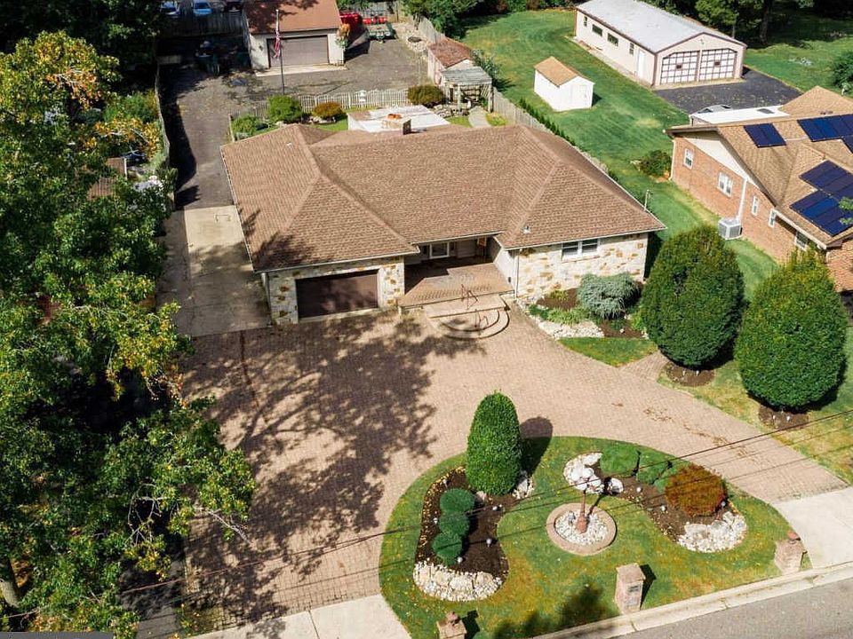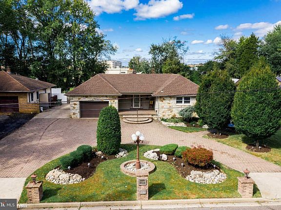 Tucked on a spacious half acre lot, this magnificent ranch offers three bedrooms, two full bathrooms and beautiful living spaces. Approach via the custom EP Henry paver driveway while beautiful custom landscaping (with two Koi ponds) and a charming front porch greet all who enter. The exterior boasts an attractive stone front and vinyl siding. Inside, pleasing natural light, classic charm and a large foyer offer a warm welcome. Every chef will love the spacious eat-in kitchen with stainless steel appliances including two cooktops and generous cabinet storage. Gather in the inviting family room with stone fireplace and exquisite exposed beam ceiling, or venture through beautiful French doors to sit out on the tranquil gas heated sun porch and take in scenic views of the gardens beyond. Retreat for a peaceful night~s sleep in the luxurious master bedroom with double closets. The home also offers a fully finished basement with a bar and billiard room, newer hardwood floors throughout most of the main floor, a walk-up attic for easy access to storage, an attached 1.5 car garage plus a two-car detached garage around back. Ideally located within walking distance to the shops and restaurants at Garden State Park and less than a 30-minute drive to Center City Philadelphia!