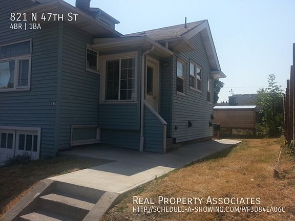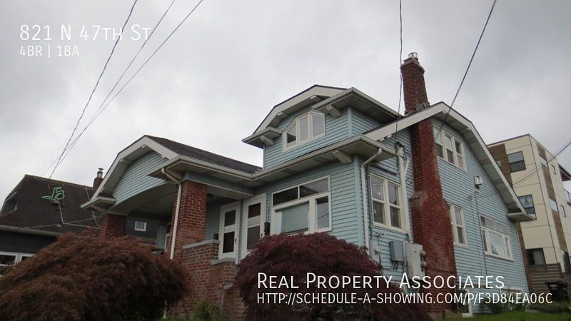 This 1350 square foot single family home has 4 bedrooms and 1.0 bathrooms. This home is located at 821 N 47th St, Seattle, WA 98103.