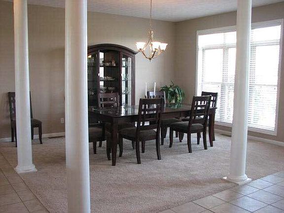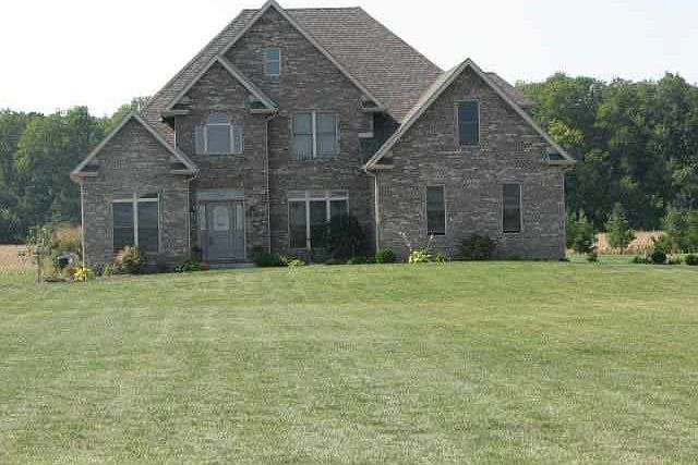 YORKTOWN SCHOOLS, 2.32 ACRES CUSTOM BUILT IN 2005 WITH FULL BASEMENT. This beautiful 2 story brick home with 1st floor MBR is in move-in condition. Offering 3191 SF of living area + 1823 SF in basement ready to be finished. Lots of architectural design including columns, windows with transoms + open stair case and cat walk overlooking GR. GR has 2 story ceilings, formal DR + spacious kitchen with separate breakfast room with windows overlooking the country side. The MBR suite has a gas log fireplace, lighted tray ceiling, WIC + 5 piece bath with double vanity, whirlpool tub and shower. Second level has 3 additional large BRs + large storage room. Situated on long paved drive way and very nicely landscaped. For complete details go to all fields detail view. Ceramic entry with leaded beveled glass door, side lights and transom. French doors to study. Kitchen offers maple cabinets, and hard surface counters + stainless steel appliances. Two of the 3 BRs on the 2nd level offer WICs.