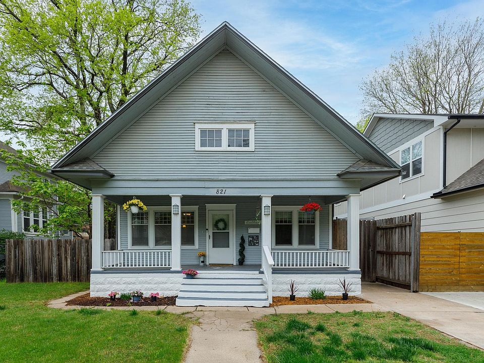 This beautiful three bedroom bungalow has the perfect blend of character and modern updates. Located in the heart of Riverside, it's just steps away from Riverside Park where you can stroll along paths, take visitors to the playground and wildlife exhibit, and enjoy the fresh air. Pull up front and you'll notice the curb appeal, with vintage charm and well-manicured landscaping. The covered porch spans the entire front of the home and provides a cozy space for a porch swing and seating area. Enter the home and you'll find picture windows and gleaming hardwood floors all throughout. The kitchen has ample cabinet and counter space with plenty of room to cook for a crowd. The eye-catching staircase leads to an upstairs bedroom with a huge walk-in closet. There's also potential for extra square footage in the unfinished attic. Two bedrooms, two full baths, and a conveniently-located laundry room complete the main floor. One of the bedrooms has French doors that lead out to the large back deck. Out back, the fully-fenced yard is spacious and offers a detached garage. This home is close to all the wonderful amenities that Riverside has to offer, including the Keeper of the Plains, Exploration Place, Cowtown, the Wichita Art Museum, Botanica, local coffee shops, unique eateries, and so much more. It's also just minutes away from nightlife in Old Town. Schedule your private showing and HURRY in to see this charmer today before it's gone for good!