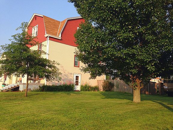 This is a 3 story home. Most of it has been updated with newer windows, new insulation and siding, hardwood floors, central vac system with 2 vac pans, 1 in the updated kitchen and the other in the formal dining room with oak floors,built in oak china cabinet,crown molding,chair rail and baseboard with pocket doors between the living & dining areas. The office is also located on this floor. There are 2 stained glass windows in the living room and large foyer the living room also has a gas fireplace. The bamboo stairs lead to the 2nd floor which has bamboo in the hall and a bedroom. There is a 2nd floor laundry/bedroom. Two bedrooms have carpet. The 3rd floor has a room plus 1 large room. There is a full basement. The back door leads to a large composite deck that is attached to the 2 stall garage. Part of the back yard has a privacy fence. The rest of the yard is enough for a volley ball net or any back yard sport. The mud room is great for entry on rainy or snowy days.
