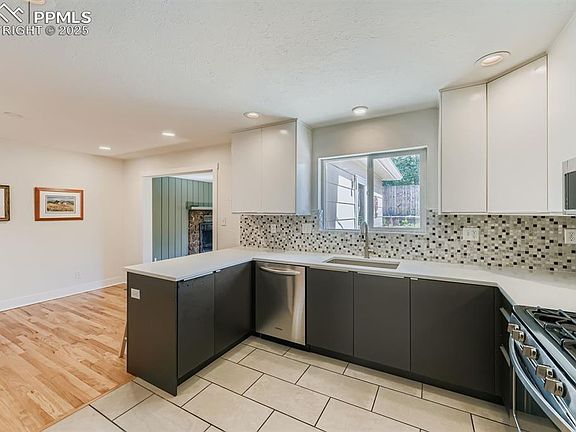 This stunning little gem of a home is located in Pleasant Valley amidst mature trees and colorful perennials. It is conveniently nestled near Garden of the Gods. It has been meticulously well maintained. The picture windows provide an abundance amount of natural light into this home. There are beautiful natural wood floors throughout the home with tasteful tile in the kitchen, bathrooms and lower level bedroom. This beautiful home has two lovely wood burning fireplaces both located on the main level. The updated elegant kitchen contains white stone countertops and gray and white cabinets to complete the look. The kitchen window overlooks the expansive private backyard and its well maintained tiered gardens of colorful perennials and various vegetables with its own drip irrigation system allowing for easy maintenance. Enjoy the backyard and its patio space for relaxation time, grilling and entertaining. Enjoy morning coffees and evening beverages on the front porch shaded by its own automatic retractable awning, allowing to have beautiful views of Pikes Peak and Garden of the Gods. This home is conveniently located near health care, shopping, restaurants, walking trails and parks. It is also close to I-25 and Hwy 24!