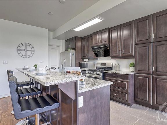 Welcome home! 3000+ sqft modern 3 storey townhouse with Elevator in Kanata Lakes, one of Ottawa's most prestigious communities. 9 Feet ceiling for all 3 upground levels. Hardwood throughout the main, 2nd and 3rd floors. Main floor open concept kitchen\living\dining\Pantry rooms with cozy fireplace and granite counters. 2 bedrooms, a family room with 18 feet windows overlooking the neighbourhood, a wet bar, full bath and laundry room complete the 2nd floor. The 3rd level has a loft, den/office and master with 5pc ensuite. Relax your own private roof top & enjoy a summer night BBQ. Close to many amenities including excellent schools (WEJ & Stephen Lealock ES, Earl of March HS), parks and shopping. Annual fee covers landscaping, road maintenance and snow removal. Nearly upgrade: Finished basement, Composite Deck and Stone-Pave-Area, Waterproof Layer for Rooftop, PLC upgrade on elevator. Pre-emptive offer received, Offer presented at 12:30 pm November 21st