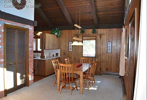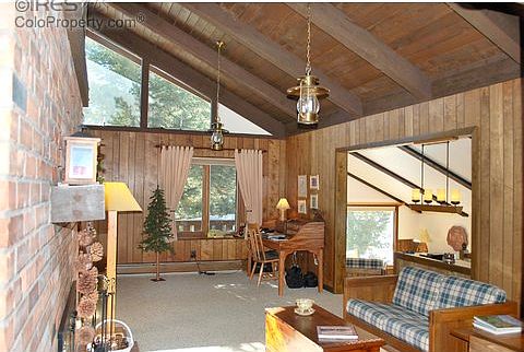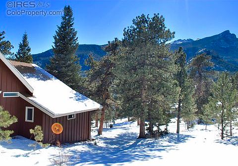 Charming Mountain Cottage set on .45 acres, and surrounded by inspiring evergreen trees. Quiet, South facing, and close to all the major attractions in the Estes Valley. 2 Bedrooms, 2 Bathrooms upstairs, very comfortable open floor plan with Living/Dining/Kitchen centered around beautiful brick fireplace. Vaulted ceilings, stunning beam work, bonus Sunroom, well-placed windows to welcome natural sunlight, and large side deck. Downstairs has large Entry, additional Bed, 1/2 Bath, and Laundry.
