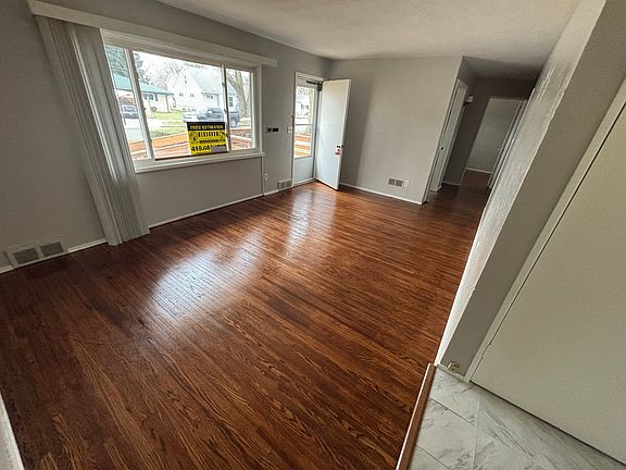 Super, super nice 1-story home. Hardwood floors refinished. 3 bedrooms, cool retro kitchen, full basement, remodeled bath with walk-shower.