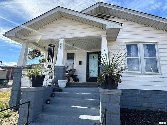 MOVE IN READY, Cute as a button bungalow with sleek modern touches!! Enjoy your afternoon on the porch with a cup of coffee, overlooking your fenced-in front yard. Step inside to find an open concept living/dining/kitchen with hardwood floors with great lighting. The living room is filled with sunshine and flaunts a stunning tiled fireplace feature. As you transition into the dining room, you'll notice the additional countertop seating. The kitchen features a clean and crisp subway tile backsplash, as well as new white cabinets, and modern countertops. The bedrooms are on either side of the hall bath, both with sun-filled windows, same great hardwood floors throughout, and spacious closets. The drive through 2-car garage has a bonus space, perfect for any outdoor storage needs, as well as a large workshop complete with workbench, additional storage space, and windows. The property is a double lot large yard ideal for gardening or enjoying a good campfire as well as a long driveway. The basement provides ample storage, the laundry hookups, as well as the mechanicals. You don't want to miss this home! Schedule your showing today!