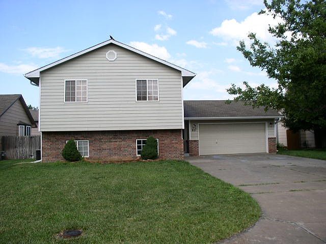 This Bi-level home features 3 bedrooms and 2 baths with an attached 2 car garage. All applianced kitchen, deck, and privacy fenced backyard. Laundry room in lower level separate room with 220. Family room has a wood burning fireplace. Jogging path and playground close by. Call Cleve at 316-993-6365 Rent-1095. Deposit-1095. Lease-1 year References Required No Pets Please References Required, No Pets Please