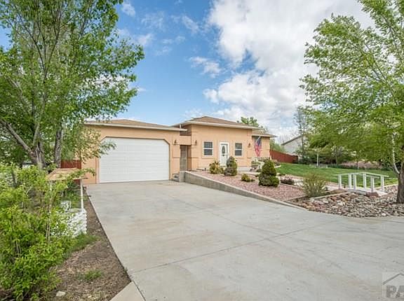 This amazing home...has an Amazing Garage too! Raised Rancher in Pueblo West with spacious family room with 11 foot ceilings and beautiful tile floors. Kitchen is open to a large dining area with real hardwood floors! Tons of cabinet space, storage and new appliances. Master suite offers walk in closet, & walk out to the deck off the master,a 5-pc bath w/garden jet-tub & his & her sinks! New Stain Master carpet installed in April (the warranty is transferable to the new buyer). Completely finished basement w/beautiful custom stained concrete floors & bar area. 2 bedrooms one is non-conforming because of the lack of closet. Could be used as office space or work out room. 6 car detached drive thru garage is awesome w/1440 Sq Ft & 14 Ft ceilings (indoor RV Parking)-WOW just perfect for all your toys or sports cars! In-ground Swimming pool in back w/surrounding custom stained concrete stamped deck, gazebo area and covered patio. Back yard is fully fenced and has grass and mature trees. This has everything you could want!!