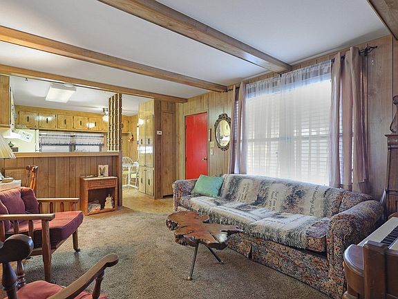 Moose Horn is a gated senior living park where the gates are closed at 5 p.m. everyday. You will appreciate this well cared for 2 bed and 1 bath home. There is a large covered patio and shaded front porch for outdoor living. The covered carport can accommodate 2 cars and there are 2 storage sheds for extra storage. Refrigerator and washer are included with the purchase. Home is in good condition and has been lovingly cared for. Moose Horn Park is centrally located close to stores and town.