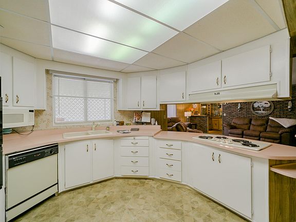 One of the best locations in this affordable 55+ Park! End of the road with greenbelt views. Immaculate large home. Big kitchen too! New refrigerator, beautiful electric fireplace, and washer/dryer included with the home! You will love this peaceful home and peaceful location. There's even a nice wet bar if you like to entertain! Living Room PLUS Family Room. Luxurious soaking tub in the Owner's EnSuite Bathroom plus a convenient shower stall. EnSuite is HUGE and there's also a big walk-in closet! Central Heat & Air PLUS Evaporative Cooler for low energy bills. RV parking is available at a low cost if needed.
