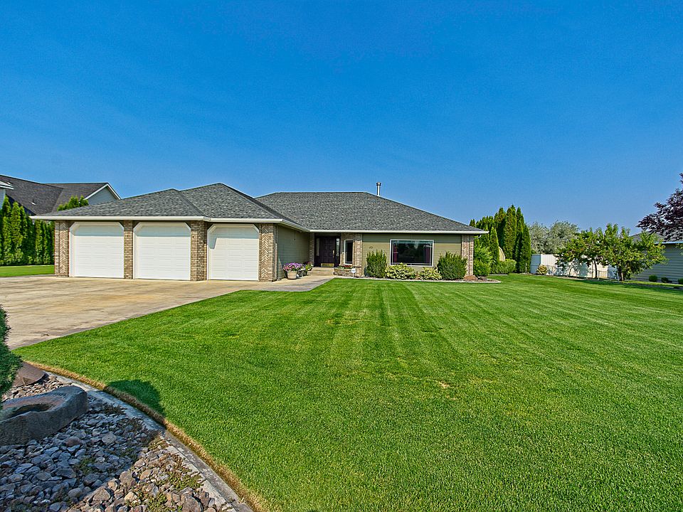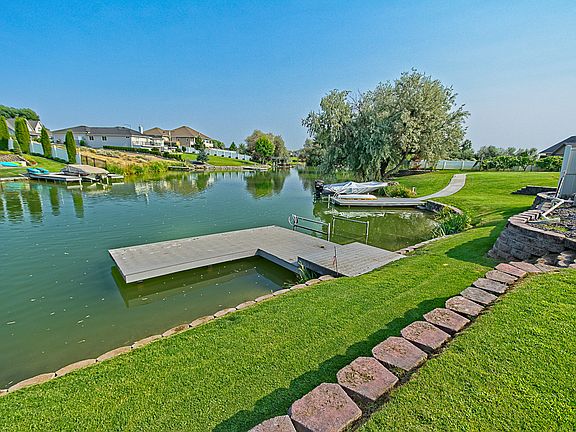 Welcome to life on the Lake. Sprawling 3 bedroom 2.5 bath 2438 sq foot rambler sitting on over 1/2 acre lot with 100+ feet of waterfront with dock and boat lift. Step inside to a slate entry, family room, open concept living and kitchen area with island eating area. Formal dining room with tiled buffet and lots of storage. Down hall to two large bedrooms and utility room with sink. Master suite is on other side of home. Surround sound system, built in vac and vaulted ceilings. You deserve this!