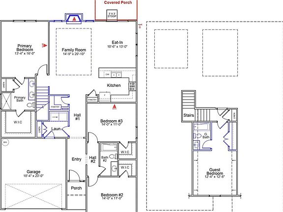 This Durham is a four-bedroom, three bathroom one and a half story home with an open floor plan. The kitchen, with two pantries, and an eat-in area are open to the trayed ceiling great room with a fireplace. The primary bedroom is split from the secondary bedrooms and features a large walk-in closet and an over-sized linen closet. Both secondary bedrooms also feature walk-in closets. The laundry room is conveniently located near the garage entry where there is plenty of storage in the linen closet. Upstairs you will find a guest suite with closet and full bathroom, additional linen closet and walk-in attic access.