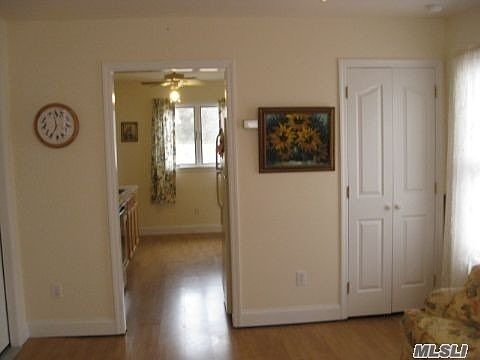 Beautiful one bedroom cottage on park-like grounds in Jamesport, close to Iron Pier Beach, available July 1 for year round rental. Rent includes electric, water, garbage disposal, landscaping. First floor features living room, eat-in granite kitchen, full bath, walk-out private deck and attached 1 car garage with washer/dryer, storage. Huge bedroom on the second floor with half bath and walk-in closet.
