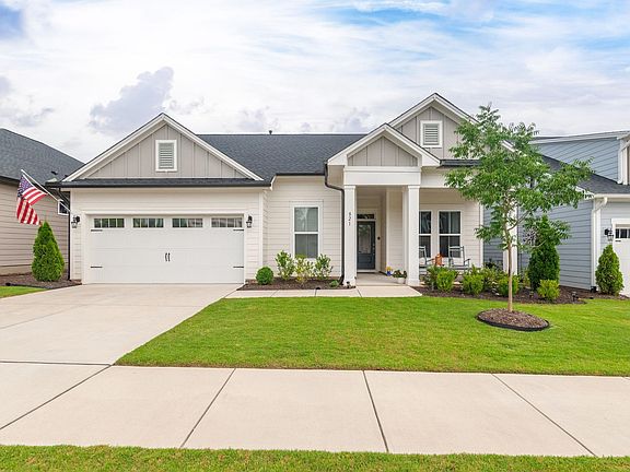 Welcome home to this gorgeous, ONE-STORY home in Encore at Wendell Falls, an exclusive active adult community in a convenient location. Encore offers a clubhouse, resort-style pool, trails, tennis, and pickleball. Your new dream home is in an amazing location with the ease of nearby shops, parks, and less than 20 minutes to downtown Raleigh. As you enter this stunning home, you will notice the open floor plan which is perfect for entertaining the new friends you will make living in Encore. You will enjoy cooking in this wonderful kitchen! There is no shortage of space for meal prep or storage for appliances. Spacious owners retreat has a trey ceiling and spa-like bathroom with a zero-entry shower - perfect for aging in place. Two additional guest bedrooms are situated away from the main living area giving your guests a private retreat. Downsizing from a large home and concerned about storage? There is additional space in the walk-up attic over the garage. BONUS - the oversized garage has a golf cart parking spot.