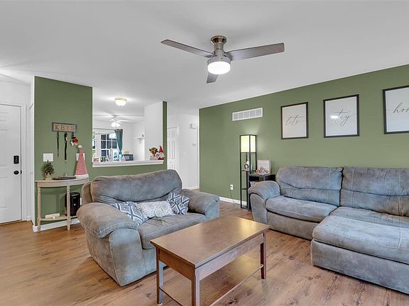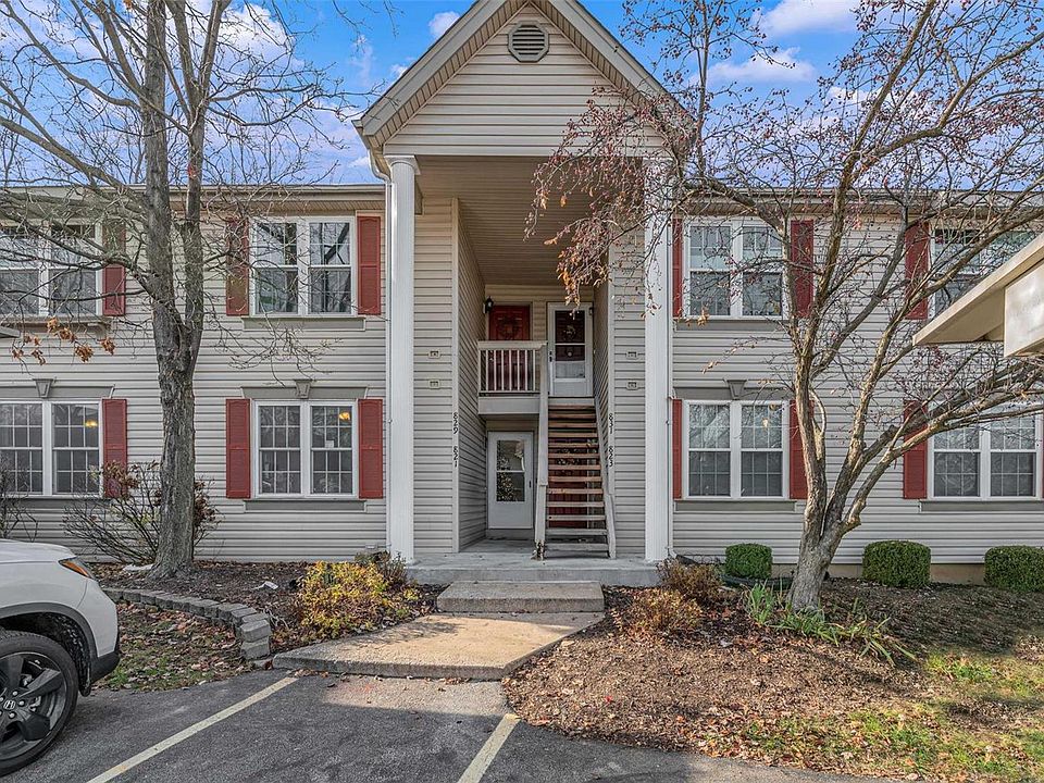GROUND FLOOR CONDO WITH FULL BASEMENT & BACKS TO TREES in Sugarwood Condos. This home has 2 Bedrooms and 2 BATHROOMS on the main floor. The Owner's suite features a full bath & walk-in closet! It also features beautiful new LVP flooring, some new light fixtures & fresh paint. Enjoy the privacy of your covered back patio with a tree line between you & large backyard of a single family home, not a parking lot! The Kitchen opens & overlooks the large living room. The secondary bedroom/office space & large hall bath makes this home very versatile for families or roommates. The FULL basement offers plenty of storage shelves & is ready for finishing plus 2 assigned parkings spaces, 1 covered. Other amenities include a pool as well as an outstanding location near great shopping, dining, & conveniences, easy access to I-364/70, & next to miles of paved hiking/biking trails connecting the Centennial Greenway to the Katy Trail & beyond! Transferrable HSA Warranty. FHSD Schools. See it today! Location: Ground Level, Suburban