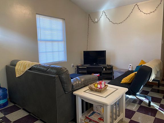 Check out the fun floors, installed for all cat fans! Close to KSU and Aggieville! 4BR home with lots of off-street parking, vaulted ceilings, in-unit washer and dryer, spacious bedrooms, nice size closets, two baths, and low utility averages! Water, gas, and electric are the tenants responsibility. Trash is provided. Off street parking is provided. Electric is approximately $120/month, $50/month for gas, and $80/month for water.