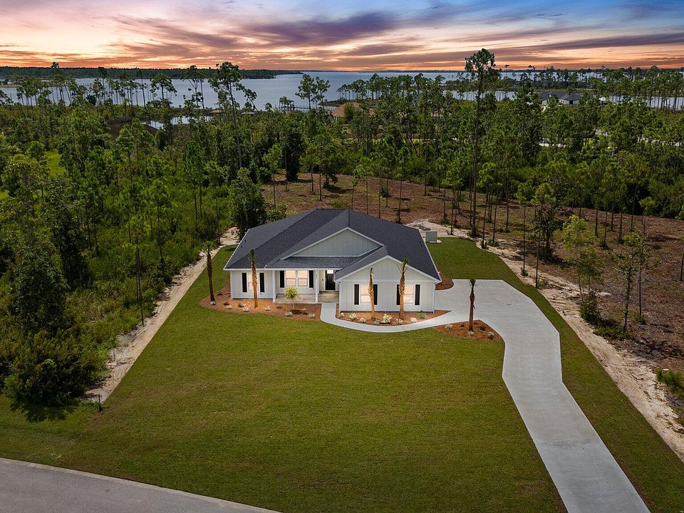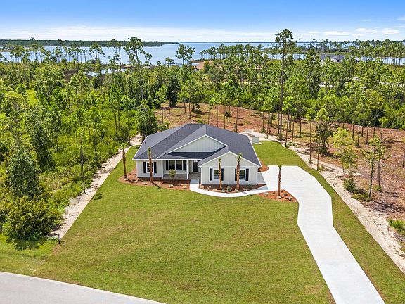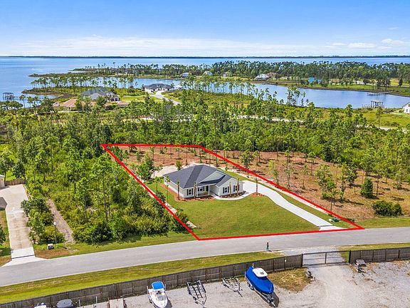 A New Custom Build in the desirable Laird Bayou! Construction is now complete, and it is ready to call Home. Attention to detail and quality of construction is on display from the moment you arrive. The estate size lot allows the home to sit back off the street, giving it amazing curb appeal. Beautiful Hardie siding and a side entrance, two car garage. Enter into an open concept floor plan that features 9ft ceilings throughout the home, along with trayed ceilings, crown molding, and recessed lighting. Main space is bright and airy with plenty of natural light. Craftsman trim and a designer lighting package. A stunning kitchen boasting custom wood cabinetry, quartz countertops, and a large island overlooking the living space. All soft close doors and drawers, walk in pantry and a stainless-steel appliance package, builder spared no expense when designing. Plenty of room for a formal dining table right off the kitchen. This home features luxury vinyl plank throughout the entire home, no carpet. The split floorplan gives additional privacy to the master suite. The master bedroom is very spacious and the master bath offers double vanities with quartz countertops, an amazing custom tile shower, and tile flooring. Walk-in closet is in the master bath adding great convenience. All three guestrooms are nice sized with nice closets. The guest bath also has a quartz countertop and a large vanity. All the fans in the home have remotes but is also prewired for conventional fans and separate lighting. The back door is off the living space which leads to the covered patio space overlooking the backyard. The lot is huge at .798 of an acre, giving plenty of space and privacy. Other features include a high-end water filtration system, deep well, and an irrigation system. No water bills to worry about. Laird Bayou is a gated, waterfront community featuring custom homes throughout. There is a private boat launch inside the community that all residents have access to. No need to wait in long lines at the marina to launch on a Saturday morning. Just seconds to East Bay and a short boat ride to the Gulf of Mexico. It even has a fish cleaning station on the dock and a hose to spray off the trailer after retrieving. Other amenities include the gates, mail kiosk, pool w/ bathhouse, and RV/Boat storage. Laird Bayou has ribbon curbed streets and underground electric. It offers the perfect blend of privacy and proximity. Just a short drive to Tyndall Air Force Base, 30 minutes to Mexico Beach and 40 Minutes to Panama City Beach. 1 Year Builders warranty. This home is a must see. Schedule your visit today.