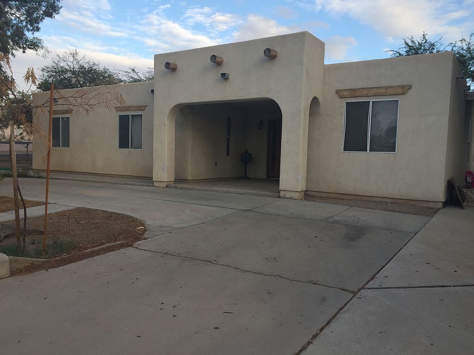 Pueblo style home sits on a corner lot. Nice quiet neighborhood. In walking distance to the elementary school,two shopping centers and Kofa High School. Also the house is near Yuma Regional Medical Center and six blocks away from our local fire station. It has a low maintenance yard with large shade trees and citrus trees around.